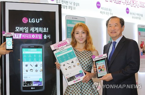 | △ 이젠 비디오 LTE 시대! (서울=연합뉴스) 이정훈 기자 = 이상철 LG유플러스 부회장과 가수 보아가 29일 오전 서울 용산구 한강대로 LG유플러스 빌딩에서 세계최초 LTE 비디오포털을 선보이고 있다. 'LTE 비디오포털'은 기존의 모바일 IPTV인 U+HDTV(월 5천원)와 유플릭스 무비(월 7천원)를 통합한 데 이어 프리미엄 지식팩(월 5천원)을 추가해 13만여편의 주문형 비디오(VOD)를 제공한다. 2015.6.29 uwg806@yna.co.kr |