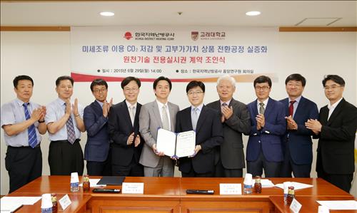 (서울=연합뉴스) 이웅 기자 = 한국지역난방공사[071320]가 29일 고려대학교와 미생물을 이용해 이산화탄소(CO₂) 배출량을 줄이는 원천기술을 독점적으로 사용하기 위한 전용실시권 계약을 체결했다고 밝혔다.