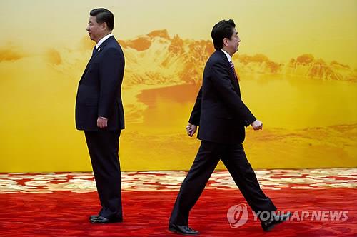 | △ 2014년 11월 베이징에서 열린 APEC 정상회의에서 마주친 시진핑 중국 국가주석과 아베 신조 일본 총리.(AP=연합뉴스 자료사진) |