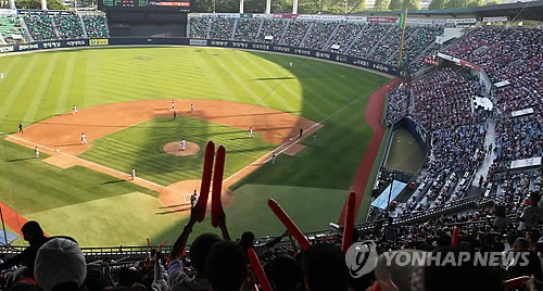 | △ 200만 관중 돌파한 KBO 리그 (서울=연합뉴스) 박정헌 기자 = 2015 KBO 리그 총 관중 200만명을 돌파한 16일 오후 서울 잠실야구장을 가득 메운 관중들이 LG 트윈스 대 SK 와이번스의 경기를 관전하고 있다. 2015.5.16 home1223@yna.co.kr |