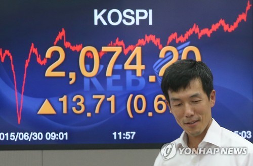 이날 코스피는 전날보다 13.71포인트(0.67%) 오른 2,074.20으로 마감했다.