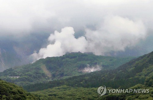 | △ 흰색 수증기 올라오는 日하코네산 오와쿠다니 (가나가와현<일본> 교도=연합뉴스) 화산성 지진이 잇따르면서 분화 우려가 제기돼 온 일본 가나가와(神奈川)현 하코네(箱根)산이 30일 분화한 것으로 보인다고 일본 기상청이 발표했다. 사진은 이날 낮 12시 36분께 하코네산 오와쿠다니(大涌谷)에서 흰색 수증기가 뿜어져 나오는 모습이다. 2015.6.30 jhcho@yna.co.kr |