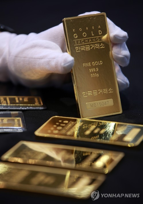 | △ 그리스 디폴트 우려에 금 투자 증가 (서울=연합뉴스) 박동주 기자 = 그리스의 채무불이행(디폴트) 우려가 커지면서 안전자산인 금에 대한 투자가 증가한 가운데 30일 오후 서울 종로구 한국금거래소에서 직원이 골드바를 들어 보이고 있다. 2015.6.30 pdj6635@yna.co.kr |