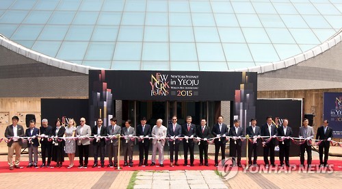| △ 세계적 광고축제 '뉴욕페스티벌' 여주서 개막 (여주=연합뉴스) 최종호 기자 = 1일 경기도 여주시 여주도자세상 반달미술관에서 세계적인 광고축제인 '뉴욕페스티벌 in 여주 2015'의 개막을 알리는 테이프커팅식이 열리고 있다. 이번 광고축제는 남한강변에 있는 썬밸리호텔에서 세미나와 포럼, 강연회가 열리고 여주도자세상 반달미술관, 도자명품관, 세종국악당, 여주도서관, 여성회관 등지에서 전시회, 시사회, 상영회가 5일까지 이어진다. 2015.7.1 zorba@yna.co.kr |