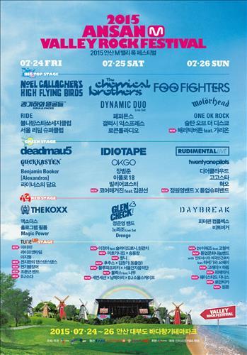 얼터너티브 록밴드 푸 파이터스와 영국 EDM의 자존심으로 불리는 케미컬 브라더스, 오아시스의 전 리더 노엘 갤러거가 헤드라이너(간판급출연자)로 안산M밸리 무대에 선다.