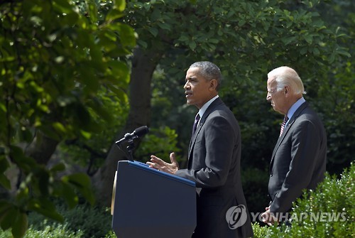 | △ 버락 오바마 대통령이 백악관 로즈가든에서 성명을 발표하고 있다. (AP=연합뉴스) |