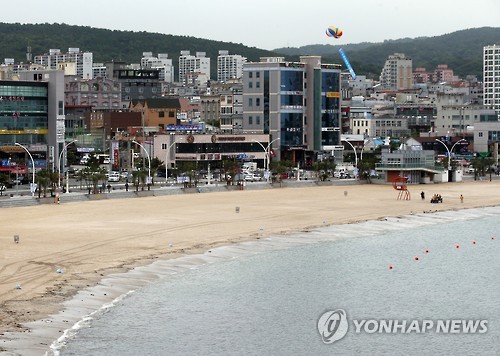 몇몇 시민이 백사장에서 바다를 배경으로 사진을 찍고 산책하고 있었지만 전체적으로 사람이 없어 휑한 모습을 보였다.