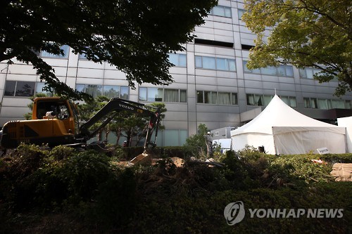 | △ 삼성서울병원 공사중 (서울=연합뉴스) 박동주 기자 = 2일 오후 강남구 일원동 삼성서울병원에서 관계자들이 선별진료소 확장 관련 공사를 하고 있다. 중앙메르스관리대책본부는 이날 삼성서울병원의 자체 중동호흡기증후군(메르스) 검사에서 간호사 1명이 1차 양성이 나와 확진을 위해 국립보건연구원에서 2차 검사를 진행할 예정이라고 밝혔다. 2015.7.2 pdj6635@yna.co.kr |