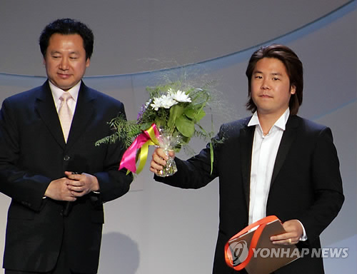 | △ 유한승, 차이콥스키 콩쿠르 남자 성악 부문 3위 (모스크바=연합뉴스) 유철종 특파원 = 1일(현지시간) 러시아 모스크바 시내 차이콥스키 콘서트홀에서 열린 차이콥스키 국제 콩쿠르 시상식에서 바리톤 유한승이 남자 성악 부문 3위에 올라 상패와 꽃다발을 받고 있다. 2015.7.2 cjyou@yna.co.kr |