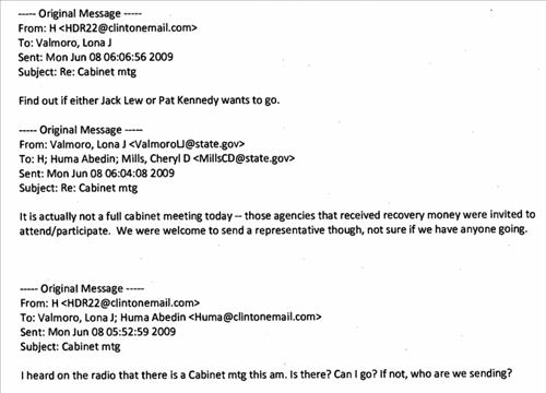 그는 2009년 6월 보좌관에게 보낸 이메일에서 "국무회의를 한다고 라디오에서 보도하는데 사실이냐"며 "내가 안가면 누굴 보내느냐"고 물었다.