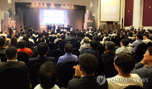 (여주=연합뉴스) 최종호 기자 = 세종대왕의 얼이 살아숨쉬는 경기도 여주시에서 진행되는 세계적인 광고축제 '뉴욕페스티벌 in 여주 2015'의 시상식이 3일 마이클 오르크 뉴욕페스티벌 회장 등 400여명이 참석한 가운데 썬밸리호텔에서 열렸다.