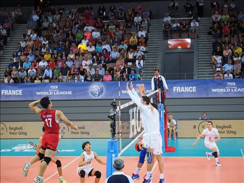 한국은 4일(이하 현지시간) 프랑스 브레스트의 브레스트 아레나에서 열린 2015 월드리그 국제남자배구대회 대륙간라운드 예선 D조 12차전에서 프랑스에 세트스코어 1-3(25-23 23-25 18-25 25-15)으로 졌다.