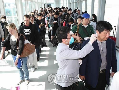 | △ 2009년 5월 3일 신종플루를 막기 위해 인천국제공항에서 승객들의 체온을 측정하는 모습 |