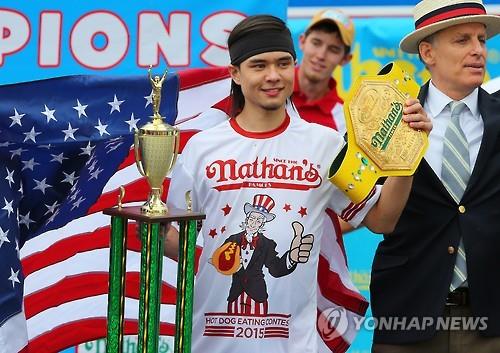 (뉴욕=연합뉴스) 김화영 특파원 = 미국 뉴욕에서 매년 7월 4일 독립기념일 때마다 열리는 핫도그 먹기대회의 우승자가 8년 만에 바뀌었다.