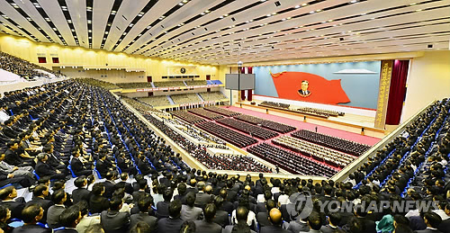 | △ 지난해 북한이 김일성 주석 20주기를 맞아 평양체육관에서 개최한 중앙추모대회 모습. |