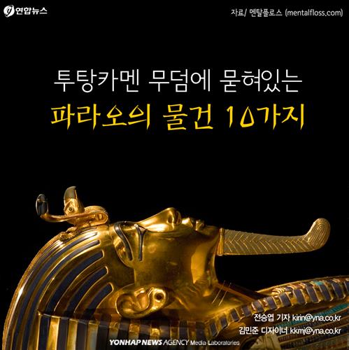 (서울=연합뉴스) 전승엽 기자·김민준 디자이너 = 투탕카멘은 18세에 요절한 고대 이집트의 '비운의 소년왕'이다. 그의 무덤에 함께 묻힌 파라오의 물건 10가지를 알아본다.