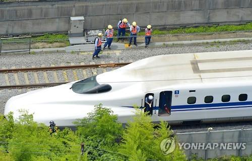 | △ 6월 30일 승객 분신으로 화재가 발생한 도카이도(東海道) 신칸센 '노조미 225호'가 가나가와(神奈川)현 신 요코하마역과 오다와라역 사이에서 긴급 정지한 모습이다. (교도.연합뉴스.자료사진) |