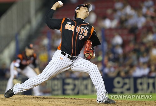 | △ 역투하는 심수창 (서울=연합뉴스) 임채두 기자 = 7일 서울 서울 잠실야구장에서 열린 프로야구 롯데와 LG의 경기. 롯데 심수창이 역투하고 있다. 2015.7.7 doo@yna.co.kr |