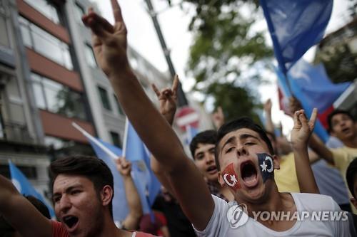 | △ 터키인들이 지난 4일 이스탄불에서 중국에 위구르족 탄압 중지를 요구하며 시위를 벌이고 있다.(AP=연합뉴스 자료사진) |