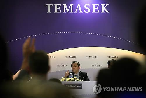 | △ 싱가포르국부펀드인 테마섹의 기자회견 장면.(AP=연합뉴스 자료사진) |