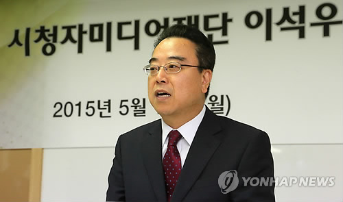 | △ 시청자미디어재단 이석우 초대 이사장 (서울=연합뉴스) 최재구 기자 = 이석우 시청자미디어재단 초대 이사장이 18일 서울 여의도 용산빌딩에서 열린 취임식에서 취임사를 하고 있다. 2015.5.18 jjaeck9@yna.co.kr |
