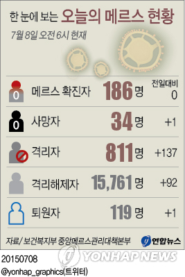 메르스 추가 확진자는 이날까지 사흘째 발생하지 않아 누적 환자수는 186명을 유지했다.