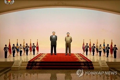 북한, 금수산태양궁전 김일성·김정일 동상 '컬러'로 교체