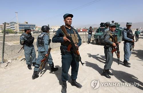 | △ 7일 아프간 수도 카불에서 치안병력이 탈레반의 자살폭탄테러 현장 주변에서 경계를 서고 있다. |