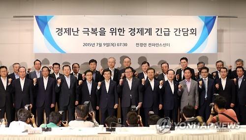 (서울=연합뉴스) 고웅석 기자 = 30대 그룹 사장단은 9일 중동호흡기증후군(메르스) 등으로 인한 내수침체로 경기부진이 지속되는 상황에서 "기업가 정신을 바탕으로 경제위기 극복에 앞장서겠다"고 밝혔다.