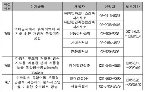 이번에 지정된 신기술에 대한 자세한 내용은 국토교통과학기술원(www.kaia.re.kr)에서 확인할 수 있다.
