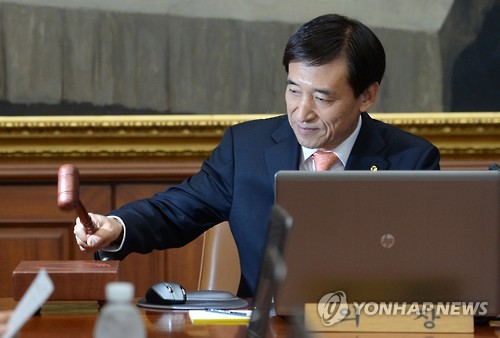 | △ 이주열 한은 총재 '땅땅땅' (서울=연합뉴스) 임헌정 기자 = 이주열 한국은행 총재가 9일 오전 서울 중구 남대문로 한은 본관에서 열린 금융통화위원회에서 회의 시작을 알리는 의사봉을 두드리고 있다. |