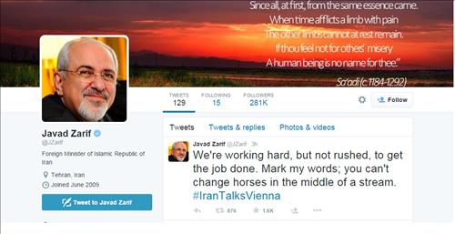 자리프 장관이 트윗을 올린 시간은 존 케리 미 국무장관이 취재진에 "핵협상을 서두르지도, 쫓기지도 않을 것"이라며 "반드시 풀어야 할 어려운 문제가 남아있다"고 밝히기 몇 분 전이다.