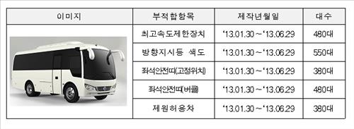 380대는 조수석의 안전벨트가 골반과 어깨를 체결하는 3점식이 아닌 골반만 체결하는 2점식이 설치돼 기준을 어겼다.