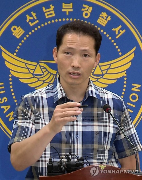 | △ 한화케미칼 폭발사고 수사상황 브리핑 (울산=연합뉴스) 김용태 기자 = 8일 오전 울산 남부경찰서에서 방경배 형사과장이 한화케미칼 울산2공장 폐수 저장조 폭발사고 수사상황에 대해 브리핑하고 있다. 2015.7.8 yongtae@yna.co.kr |
