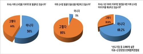 미래창조과학부 산하 신성장창조경제협력연합회는 10일 이런 내용을 담은 '국내 기업을 위한 신성장 정책지원 개발 설문조사' 결과를 발표했다.