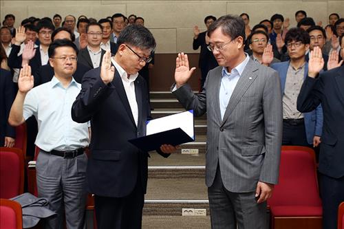 지난 10일 열린 파산재단 관재인 워크숍에 참석한 곽범국 예보 사장(오른쪽)