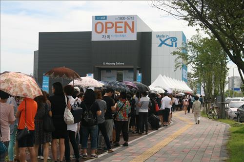| △ 지난 10일 문을 연 자이 더 익스프레스 견본주택에 인파가 몰려 무더위 속에서도 300m가 넘는 긴 줄을 형성하는 진풍경을 보였다. GS건설 제공. |