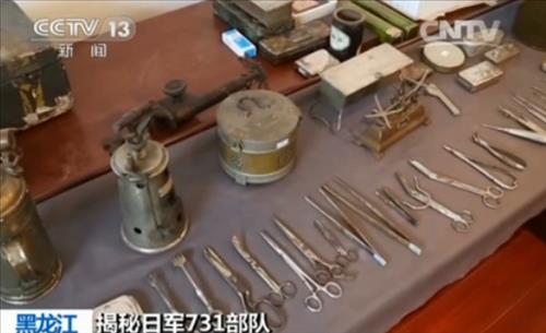 12일 중국중앙(CC)TV에 따르면 헤이룽장(黑龍江)성에 있는 '중국 침략 일본군 731부대 죄증(罪證)진열관'은 일제시기 관동군이 사용했던 외과 수술도구, 현미경, 실험용 사발 등 35건을 발굴해 공개했다.