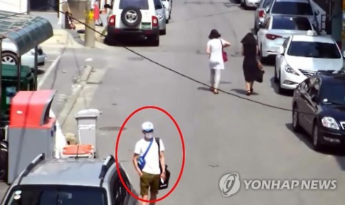 | △ 주변 살피는 보이스피싱 자금 전달책 (이천=연합뉴스) 경기 이천경찰서는 금융기관 등을 사칭, 피해자들에게 "금융정보가 유출됐으니 냉장고에 현금을 찾아 보관하라"며 집에 찾아가 돈을 훔친 혐의(절도)로 최모(34·중국 국적)을 구속했다고 13일 밝혔다. 피해자 집에 들어가기 전 주변을 살피는 모습. 2015.7.13 <<이천경찰서>> you@yna.co.kr |
