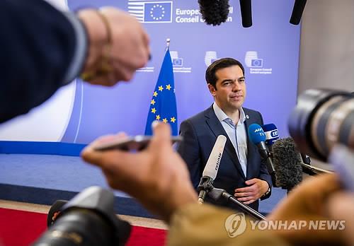 | △ 13일 유로존 정상회의를 마친 후 치프라스 그리스 총리가 기자들의 질문에 답하고 있다.(AP=연합뉴스) |