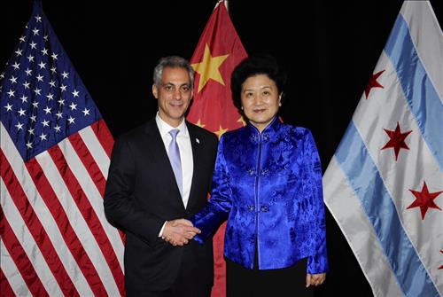 | △ 람 이매뉴얼 시카고 시장과 류옌둥 중국 국무원 부총리 (2013, 시카고시 공식 웹사이트) |