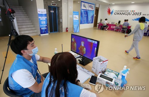 발열감지기는 체온이 37.5도를 넘으면 알람이 울리게 돼 있다. 간혹 뜨거운 커피나 음료를 들고 들어가다가 체온을 다시 측정하는 경우가 있었을 뿐, 선수촌과 경기장은 끝까지 '메르스 안전구역'으로 남았다.
