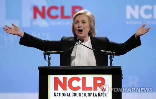 (서울=연합뉴스) 이윤영 기자 = 미국 민주당의 유력 대선후보인 힐러리 클린턴 전 장관이 멕시코 비하 막말 행진을 이어가는 공화당의 도널드 트럼프 후보를 작심하고 비판했다. 멕시코 등 히스패닉(라틴계) 유권자들을 대상으로 한 강연에서다.