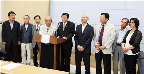 | △ (청주=연합뉴스) 전창해 기자 = 청주·청원 문화원 관계자들이 지난달 12일 청주시청 브리핑룸에서 기자회견을 열어 양 문화원의 통합을 선언하고 있다. <<연합뉴스 DB>> |