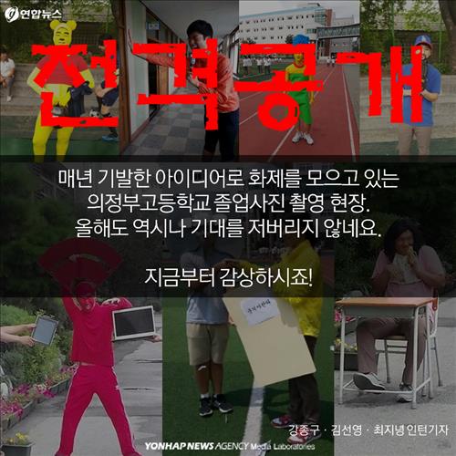 (서울=연합뉴스) 강종구·김선영·최지녕 인턴기자 = 매년 기발한 아이디어로 화제를 모으는 의정부고등학교 졸업사진 촬영 현장. 올해도 역시나 기대를 저버리지 않았네요.