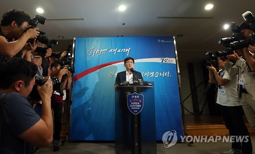 | △ 지난 10일 오후 영종도 인천공항세관 수출입통관청사에서 특허심사위원장인 이돈현 관세청 차장이 새내 면세점 특허심사위원회 심의결과를 발표하고 있다. 관세청은 '황금티켓'으로 불린 서울지역 대형면세점 심사결과에 대한 사전 유출 의혹과 관련해 자체 감사에 착수했다. |
