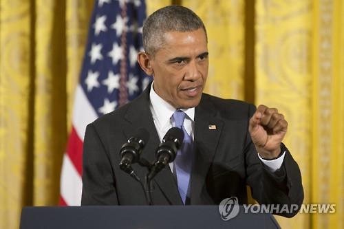 | △ 이란 핵협상 설명을 위한 기자회견을 하는 오바마 대통령(EPA=연합뉴스) |