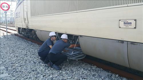 | △ 코레일 광주기지에서 호남고속철 차량상태를 점검하고 있는 현대로템 직원들.<<현대로템 제공>> |