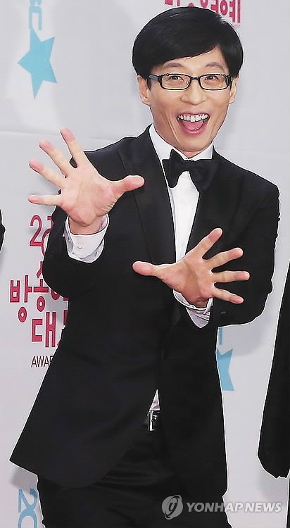 | △ 포즈 취하는 유재석 (서울=연합뉴스) 홍기원 기자 = 개그맨 유재석이 29일 오후 서울 마포구 상암동 MBC 미디어센터에서 열린 '2014 MBC 방송연예대상'시상식에서 포즈를 취하고 있다. 2014.12.29 xanadu@yna.co.kr |