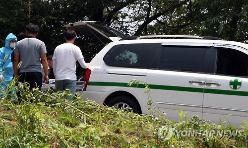 | △ 수습되는 수원 실종 여대생 시신 (평택=연합뉴스) 류수현 기자 = 15일 경기도 평택시의 한 저수지 인근 야산에서 숨진 채 발견된 A(22·여)씨의 시신이 수습되고 있다. 2015.7.15 you@yna.co.kr |